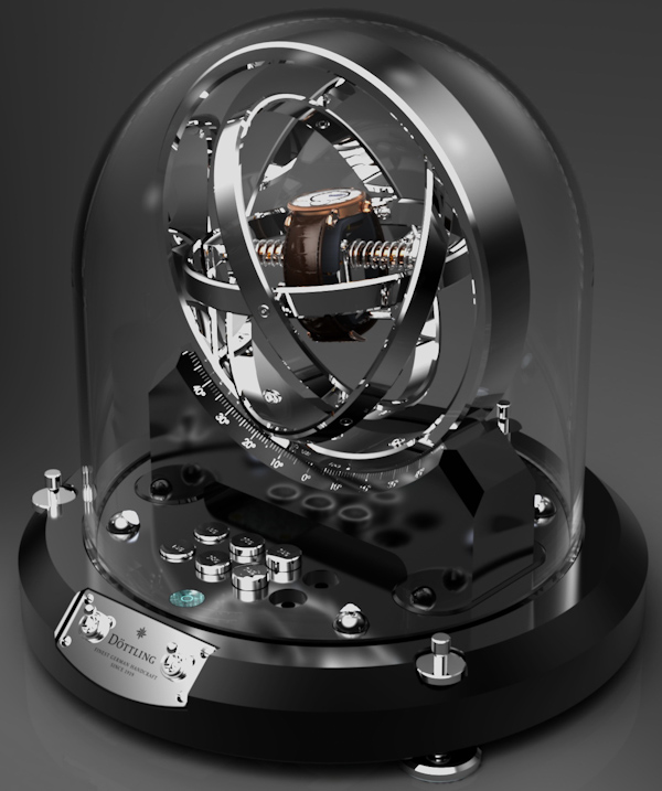 Watch winders, like other special accoutrements of the rarified man (or woman), are ostentatious and useful. This one, made by Dottling and called the Gyrowinder, is just ostentatious.