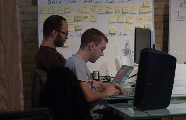Pulpfingers’ two-man founding team of David Charlec and Jerome Scheer (pictured in the photo at right, incidentally working at 500px’s recent Pixel Hack Day event) will continue to operate the Pulpfingers app for the next several months as they transition to full-time roles working on the 500px platform. They’ll be spending lots of time in Toronto in the coming months, but will ultimately keep their base in France as a European outpost of 500px.