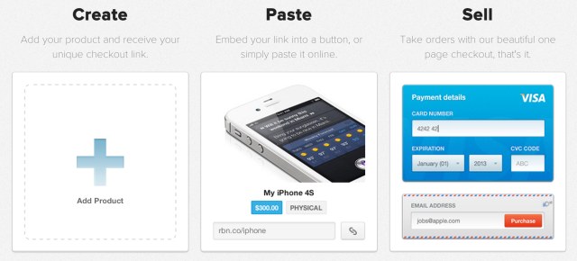 To use Ribbon, a seller adds a product — whether digital, physical, or a service — and they’re then given a URL. “Think bit.ly with payments,” says Rashwan. “And that URL is then a one-page checkout. All you need to do to sell across other platforms is copy and paste this URL into your Facebook fan page, your Twitter stream, or your email.”