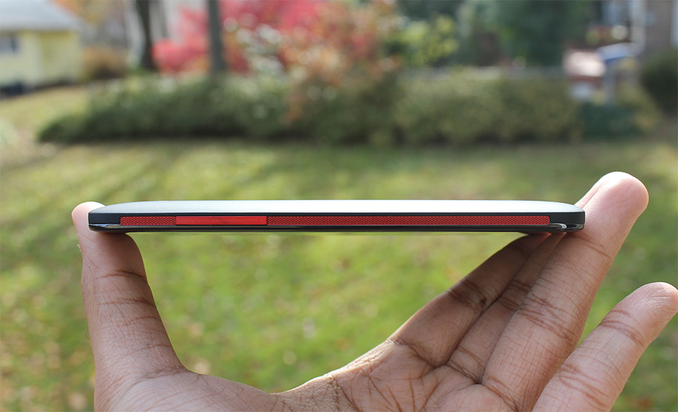 Meanwhile, the DNA’s rear end is even more spartan than the front — it’s all dark grey soft touch plastic with a few splashes of a red trim around the 8-megapixel camera and in the form of the Beats Audio logo. There’s much more than meets the eye here though, and one of my favorite design flourishes can be found directly to the left of the camera pod.