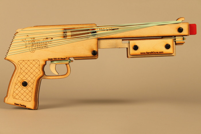 Imagine it’s Thanksgiving morning and you’re with the family. You creep down the stairs, Sheriff in hand, and sneak in on dear old dad as he makes bacon pancakes. You set your weapon on “shotgun” and pull the trigger. A volley of hot rubber whangs him in the legs, his old frame buckling as he takes the shot. Another kill. All this can be yours with the Bandit, an automatic rubber band gun built for speed and (mild) pain infliction. The project, created by Bob Coulston, is a DIY, easy-to-assemble rubber band gun that can fire single bands, multiple bands in rapid succession, or all the bands at once, creating a hellstorm of flying bands.