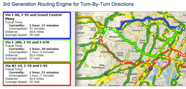 “Apple found out that it’s a lot harder than you think. Just because you have GPS data doesn’t mean you understand traffic. It’s not just enough to get speed data. There are vehicles on the side of the road and you don’t want to show that traffic has stopped. In a snow storm you don’t want to say traffic is free-flowing [just because there are no cars on the road]. Someone could be riding a bike rather than in a car. There’s a lot of analytics and algorithms that go into creating high-quality maps and traffic data. That’s why Inrix has over 100 patents.”