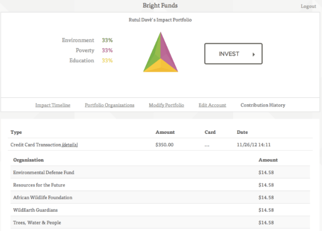 In these ways, Bright Funds really does start to feel like a non-profit, tax deductible version of private investing and asset management. Walrod says he likes to think of Bright Funds as a broker and users’ donations as their investment in a mutual fund, with each tailored to “investment objectives” — being in this case, rather than your own financial goals, the causes users want to support.