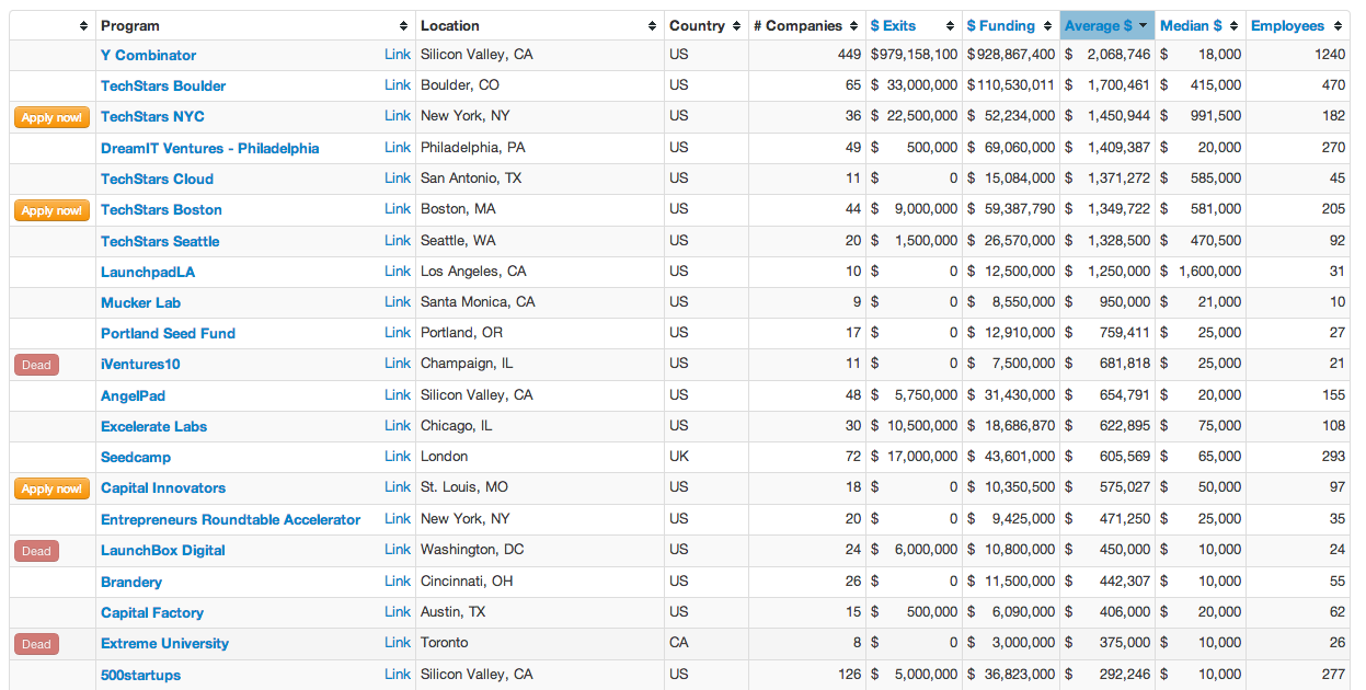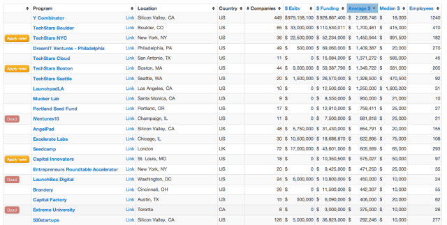 Most notable, however, is the data that Christiansen has gleaned from Seed-DB on the impact of seed accelerator programs, starting with the fact that accelerators have funded over 2,000 startups, which have raised a total of $1.6 billion in funding. The founder, in turn, estimates that about 100 of these startups have already been sold for a total of approximately $1 billion and, perhaps most importantly, startups that have graduated from seed accelerators have created over 4,800 jobs.
