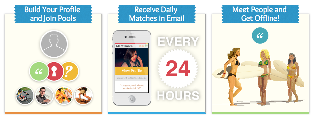 The possibility of meeting new people that share your passion for softball or Romantic poetry is exciting, but how can you be sure you’re not about to meet up with a creeper? At The Pool offers profiles and the ability to upload pictures, as well as Facebook verification and matching based on mutual friends, but this is either not the world’s most reassuring fail safe or you’re limiting your scope of potential “new friends” based on shared connections. Plus, you do get to talk to someone first for a little chat-based vetting before meeting them live, in 3-D. (Not that this goes all the way towards reassurance, either.)