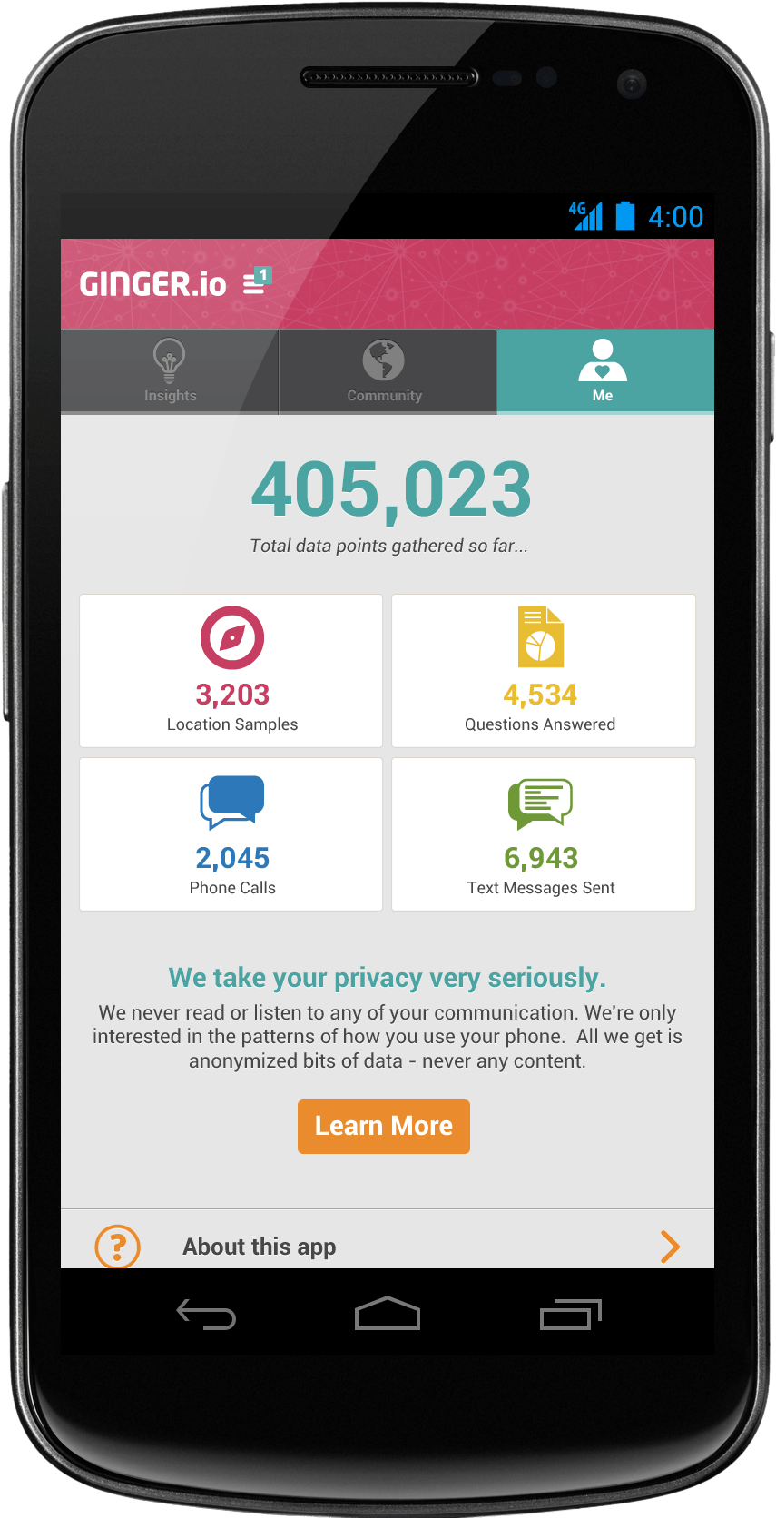 Madan and his co-founder Karan Singh also pointed out that current health care legislation is putting a greater emphasis on the “proactive” care that Ginger.io supports. Singh added that using the smartphone to monitor behavior makes sense because it’s “the common denominator” and “increasingly crosses demographics.”