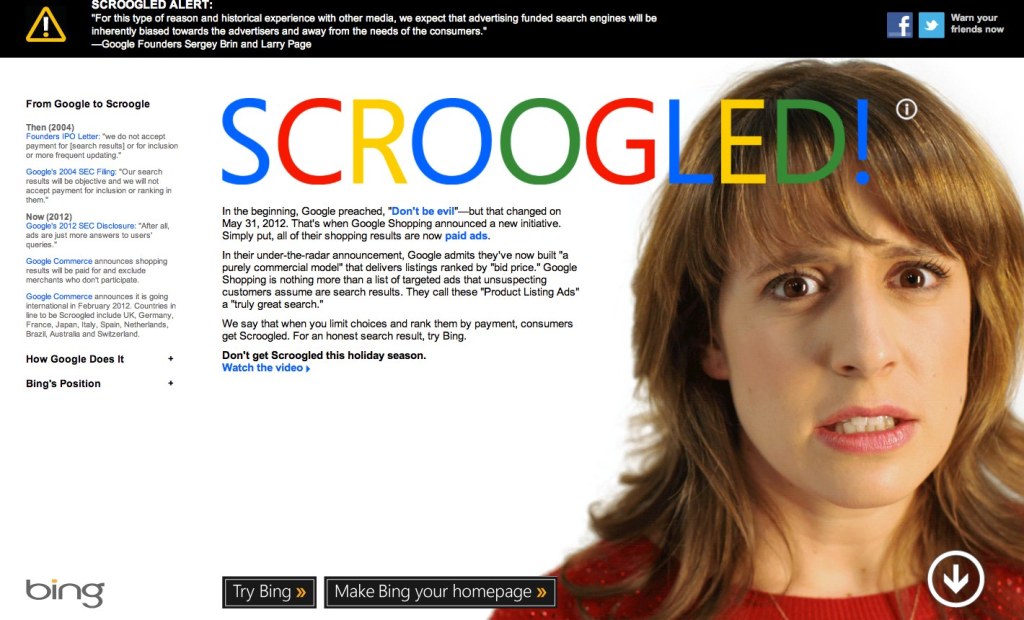 Microsoft started a rather controversial anti-Google campaign this morning that alleged Google is essentially misleading its users because all of the company’s shopping results are now paid. The “Don’t Get Scroogled” page is getting quite a bit of attention today, but at the same time, there is also some unease about how Bing organizes its own shopping results.