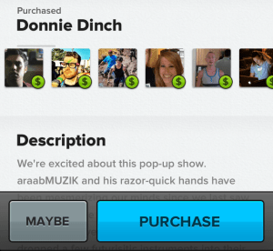 Push notifications from friends assure you won’t be alone at the venue. Dinch says “purchase notifications are what drive the most purchases without a doubt.”