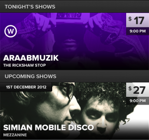 [This is a pretty accurate representation of WillCall. The main omission is just that it doesn’t have shows for sale every night.]