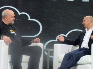 Jeff Bezos, Amazon’s founder and CEO, took the stage at the company’s re: Invent developer conference for a wide-ranging discussion with the company’s CTO Werner Vogels about Amazon’s web service and retail business, as well as his view about entrepreneurship and his personal projects, such as the 10,000 year clock and the Blue Origin space program.