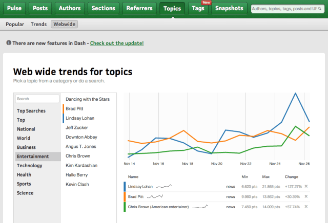 The company, for those unfamiliar, offers a flagship product known as Dash, a predictive analytics tool that allows publishers to follow trends, page views, and traffic patterns to keep tabs on which topics and trends are gaining or losing steam with readers as well as elsewhere on the web. In addition to providing data that can help publishers gain editorial insight into their audience as well as help the ad sales team know what trends they can sell against, the platform also offers an API platform for publishers to build on top of.