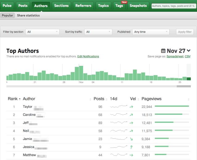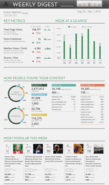Many publishers seem to agree. Today, Parse.ly has 70 publishers as customers, with several hundred conducting trials. Prior to its public launch, Parse.ly was running in a private beta mode with a few publishers including The Atlantic, Apartment Therapy, The Press-Enterprise, U.S. News & World Report and The Next Web, to name a few, and all remain customers today. It’s also now used by The Dallas Morning News, Mashable, Meredith Publishing (Parents.com, Recipe.com), and Sugar, Inc., as well as Reuters and Ars Technica.