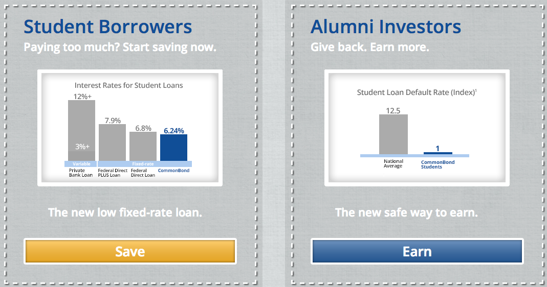 In turn, when students do need to subsidize their education, they’re forced to deal with some pretty unattractive options in the loan department. Federal loans come with high, fixed interest rates and private bank loans, while variable, are even worse — coming in somewhere around 12 percent. More broadly, anyone looking for a personal loan (to say, pay off credit card debt) finds the same ugly reality. That’s why we’ve seen a big rise in the popularity of peer-to-peer lending platforms of late, with companies like LendingClub and Prosper leading the way.