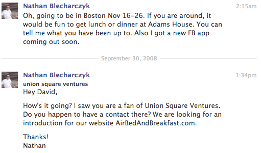 While I didn’t have a contact at USV at the time, I remember thinking that his business sounded neat, but that there couldn’t possibly be that many people who would want to share their home with strangers. Turns out I was in good company.
