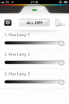 … a wireless LED lightbulb system that lets you turn iOS devices into a remote control for your lampshades. To kick things off, you need to buy the starter pack, which includes three bulbs plus the wireless bridge that hooks up to your Internet router so the bulbs can speak to the app and vice versa. The bridge apparently supports up to 50 bulbs — albeit, your wallet may not stretch so far. Set up is straightforward: after screwing the bulbs into the sockets of your choice, you plug the wireless bridge into your Internet router and download the Hue app to your iOS device (iPhone, iPad or iPod Touch). When you fire up the app for the first time it will ask you to connect it to the bulbs by pushing a button on top of the bridge. Once the app and bulbs are linked you can start playing around with the lights, which is where the fun starts.