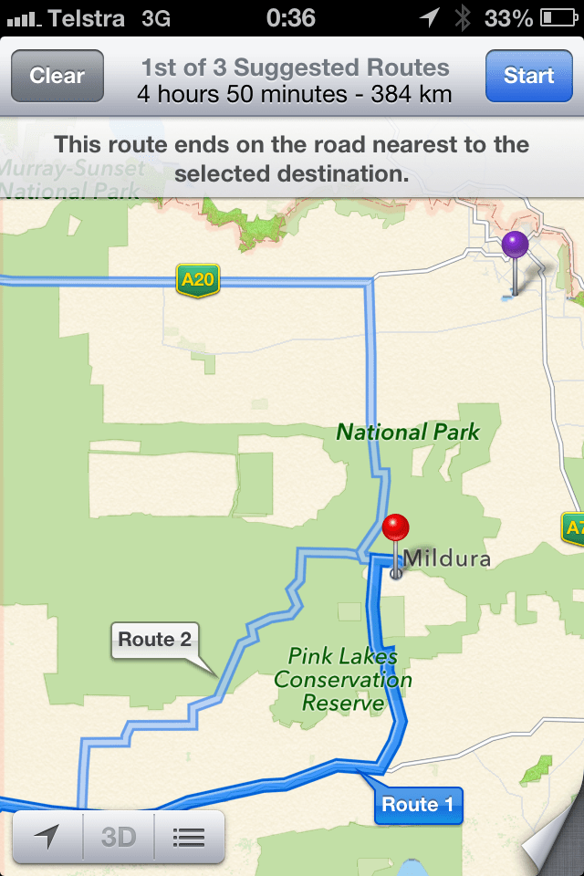 The press release stated that tests on the mapping system confirmed that it shows the city of Mildura as being in the middle of Murray Sunset National Park, when in fact it is located about 70 kilometers away. The statement from Victoria Police said this is a “potentially life threatening situation” because there is no water supply within the park and temperatures can reach 46 degrees Celsius.