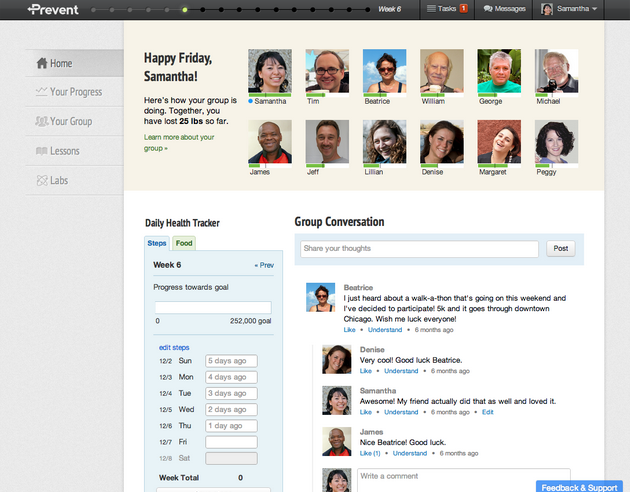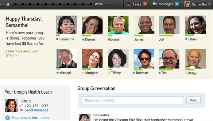 The 16-week program leverages an interactive, web-based curriculum, digital tracking tools, coaching and social support to encourage people at risk to create healthier behaviors. After joining the program, users are mailed a “welcome kit” that includes a mobile-connected wireless scale and pedometer, which track progress without the need for any setup. Users are matched with a coach and a group of peers that facilitate support and positive reinforcement and are then guided through 16 lessons based on the DPP’s clinical trial curriculum.