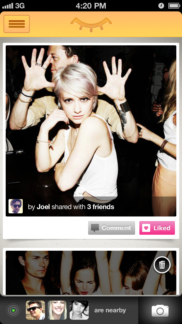 The company is targeting those ages 18 to 24, in high school and college, so the idea is that a group of friends would have to collectively agree to install Wink in order for it to gain traction. Hmm. Color had $41 million dollars and the same idea, pivoted away from that, then failed. Wink has an undisclosed amount of seed funding from Mangrove Capital– early backers of Skype, and shopping sites Brands4Friends and KupiVIP. It also clearly has the powers of positive thinking on its side.