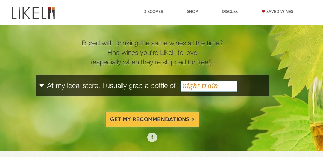 Because I am a conessueir conneseur lover of fine wines, cordials, spirits, toner, rubbing alcohol, and cooking sherry, I find myself often dealing with entrepreneurs who are focused on the selection and sale of these fine beverages. Luckily, these websites are getting better and better. Take Likelii, for example. The team there has created a sort of Pandora for booze, building a unique DNA for almost every brand they sell and recommending wines based on your personal preference.