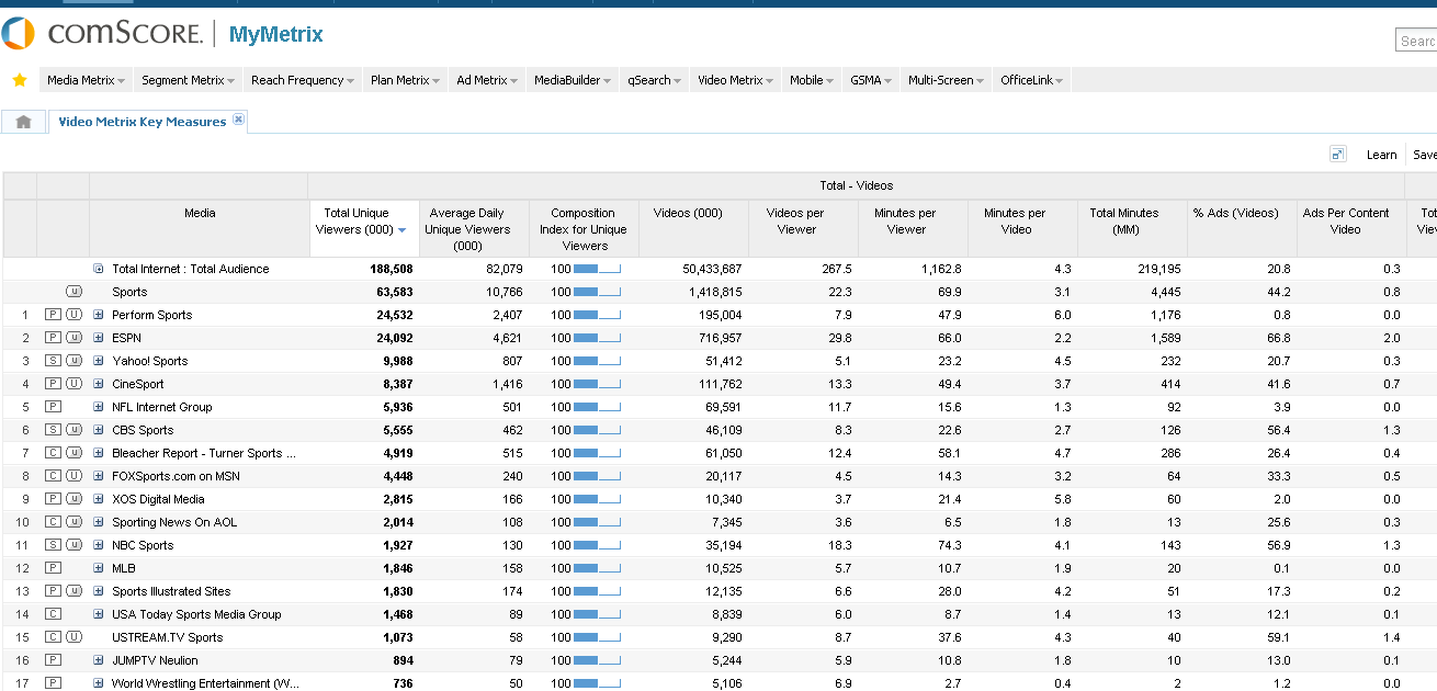 This represents the first time that Perform Sports has claimed the top position among digital video providers in the U.S., so it’s a big milestone for the company, which, compared to ESPN and Yahoo is a veritable newcomer to the sports world.