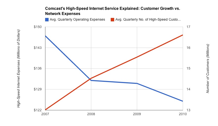 The paper itself goes into the history of bandwidth caps and isn’t saying much we didn’t already know. Basically the false scarcity imposed by service providers helps them maintain high profits while blaming data hogs. As data usage went up, however, the cost of providing that data went down.
