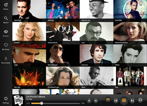 On the other hand, Rhapsody is far from first-mover status on the tablet front, as it finally debuted its native iPad on Monday — long after its competitors. (Rdio hit the iPad in August of last year, MOG in March and Spotify in May, for example.) However, while lagging behind on the iPad, Rhapsody is hoping to get a beat on its competitors by creating value-add via other, developing channels.
