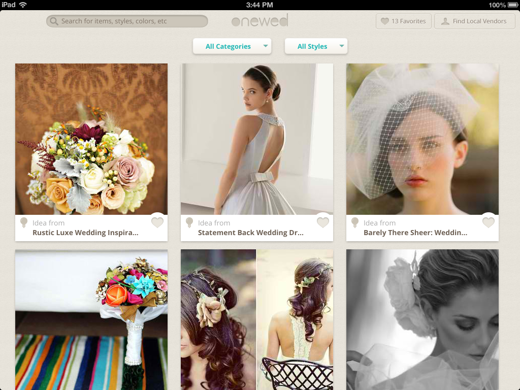 It’s been days, possibly even weeks, since we’ve covered a wedding-focused startup. Let’s change that, shall we? OneWed, the company formerly known as Nearlyweds, is now on iPad. The new app quietly arrived just before the holidays, offering a new way for brides-to-be to browse, be inspired by, save and share wedding imagery and ideas.