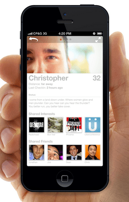 CEO Sean Rad says that he thinks Tinder is resonating with college students because the app has taken a more subtle approach to dating, as it doesn’t require users to “put themselves out there” to the same degree other apps require. In terms of how it works: Tinder is location-enabled, in that it shows you other people who nearby it thinks you might like to know, connecting you if you’re interested. The experience is anonymous until someone you like returns your interest, as you can anonymously “like” the person or skip to the next suggestion.