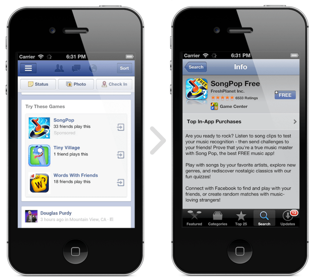 If Facebook mobile app install ads continue to perform well once users acclimate to them, Facebook could have another big revenue stream on its hands. The app economy continues to heat up as every company and game developer goes mobile. But discovery through the App Stores is tough until you reach the top of the charts. So Facebook could position itself as the best way to buy legitimate installs, making it a core part of marketing spend for all developers.