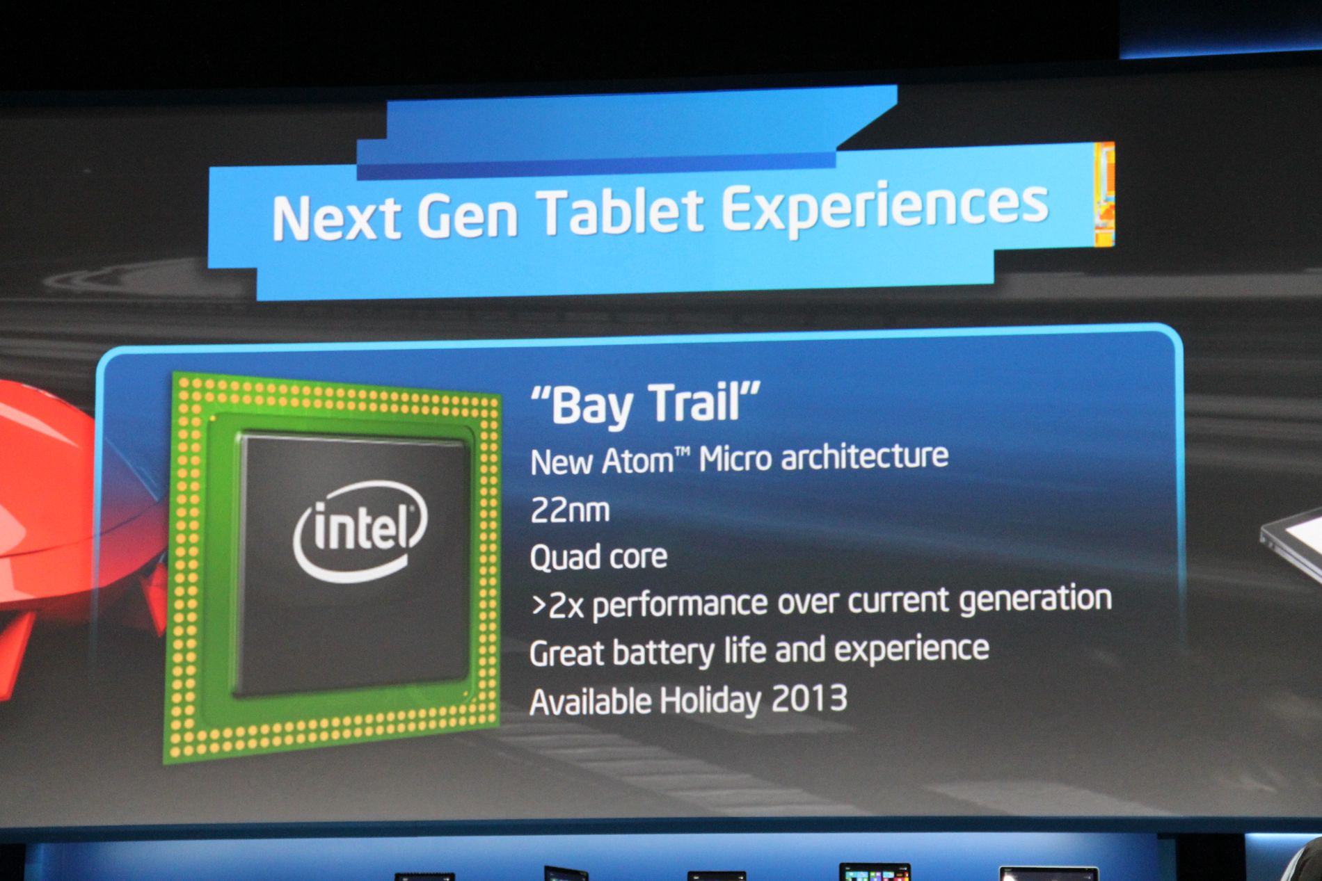 The chipmaker just unveiled its roadmap for Window 8 tablets. At the core will be the latest generation of Atom processors: quad-core architecture at a 22nm size. Intel calls it the Bay Trail and expects to see it within shipping hardware in late 2013 — including Android tablets.