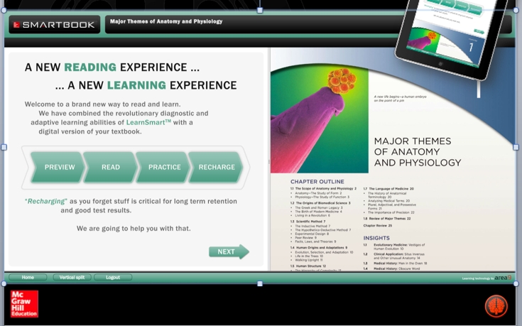While the suite will include products like a “before-the-course” adaptive resource (that lets students warm up before difficult classes begin), a “photo-realistic virtual lab” and a comprehensive adaptive learning system, the stand-out was its unveiling of SmartBook, an adaptive eTextbook for laptops, desktops and tablets that adjusts to students’ comprehension and speed as they go. It’s not quite the Textbook of the future, as the experience is comparable to reading your average textbook, but it’s a clear sign of which way things are going. Instead of having to quiz yourself, your SmartBook will assess your knowledge as you read, highlighting content and concepts that students need to master.