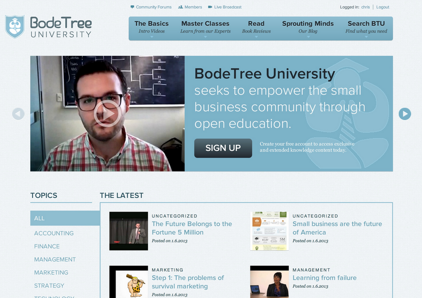 The new platform aims to bring an extended classroom experience to BodeTree through open education, allowing small business owners to access educational videos on topics that range from accounting and finance to strategy and technology. The platform offers both introductory and master-level content, so users can brush up on 101-level skills or dig into more advanced content in a collaborative online class environment where they can learn directly from experts and engage in discussions.