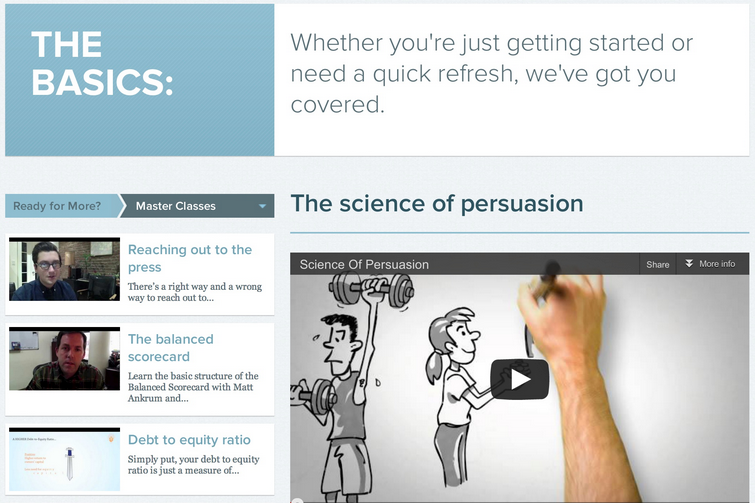 The biggest differentiator between the new platform and other educational sites, Myers says, is that it focuses on providing direct, personal access to thought leaders and experts from the Fortune 500 world and “will always be free.” Users can attend a live class taught by a respected marketing executive and connect with them immediately afterward, or peruse through the platform’s curated list of biz resources and book reviews, videos and blogs.