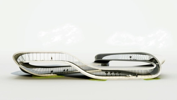 One surface folded in an endless möbius band. Floors transform into ceilings, inside into outside. Production with innovative 3D printing techniques. Architecture of continuity with an endless array of applicability.