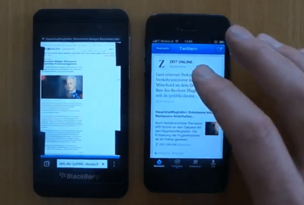 [youtube http://www.youtube.com/watch?v=UK0hWJEr874?feature=player_embedded]When is a secret not a secret? When it’s featured in comparison videos ahead of an official product launch. The upcoming BlackBerry Z10 (which, if called something else or designed differently when it’s officially unveiled next week will actually blow everyone’s minds) is now starring in a video by German blog telekom-presse.at (via 9t05Mac), doing its business next to an iPhone 5. It provides a good look at how the two compare physically, but also how the two operating systems running each compare similar tasks.