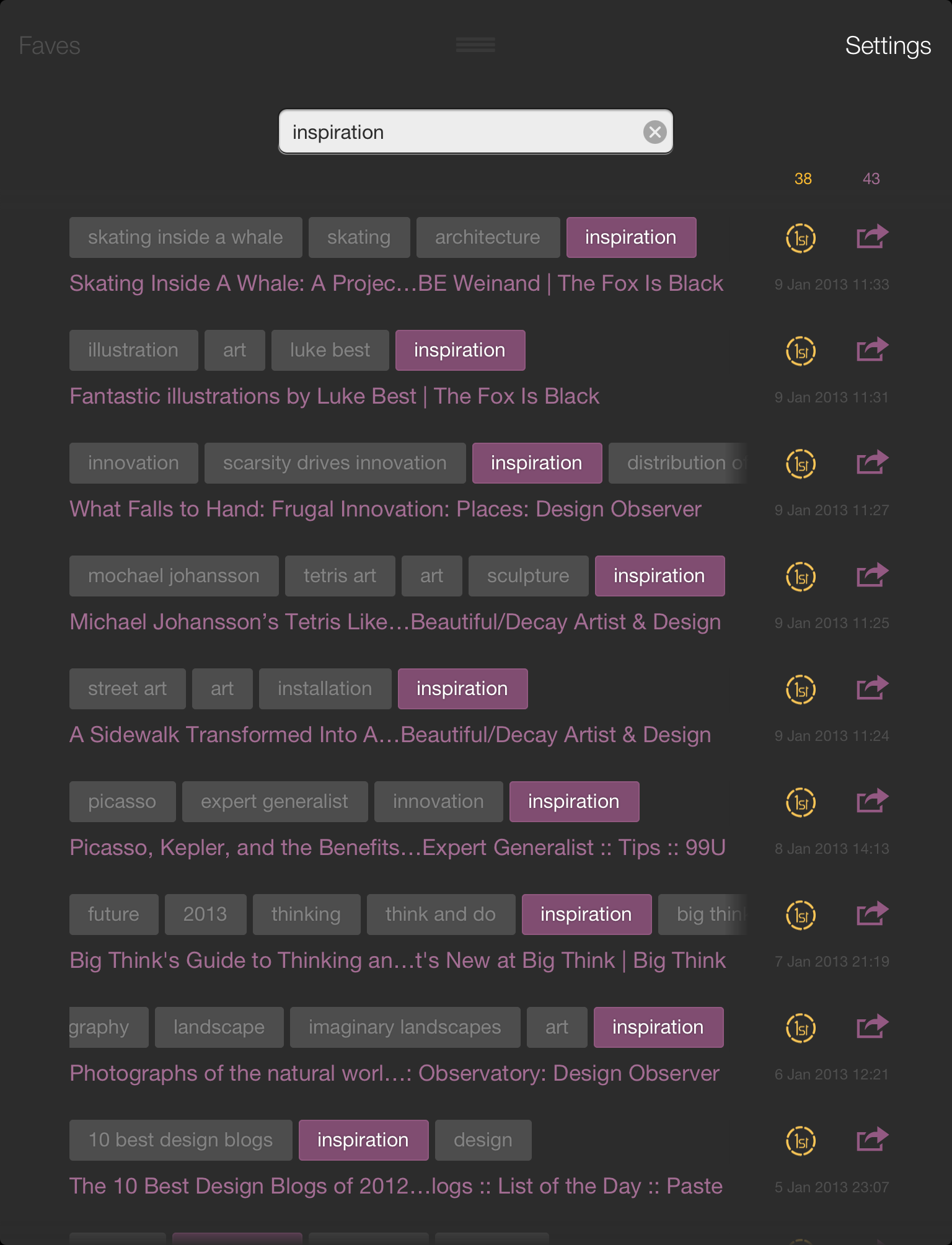 But not to worry, the app allows you to “Fave” the stuff you enjoy, which then gets added to your “Faves” page (in the bottom center of the screen), allowing you to keep a record of all the stuff you’re digging into. Users can also add tags to save pages for later reference, in turn making the service just a little bit better for others. Want more content? Just swipe down.