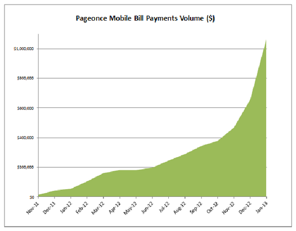 Thanks to its near-8 million users and over 6,000 billers, the startup has seen hockey-stick-caliber growth over the last year, announcing today that bill pay volumes processed through its payment platform have reached $1 million per day. Since introducing mobile bill pay a year ago, Pageonce Marketing VP Daniel Kjellen tells us that the startup is now seeing consistent 30 percent month-over-month growth in payment volume.