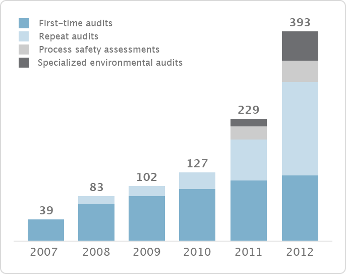 Apple conducted 72 percent more audits in 2012 than it did in 2011, for example, totaling 393 audits across facilities employing 1.5 million workers. All types of audits increased for the year, including firs-time, repeat, process safety assessments and specialized environmental audits, but the last one took the biggest jumps vs. previous years. In 2012, Apple conducted 55 focused environmental audits, which is a 293 percent increase over the number it ran in 2011. The Mac maker works with outside associations in this area, too, just as it does with the FLA regarding labor, including the Natural Defense Council, the EPA and the Institute of Public and Environmental Affairs.