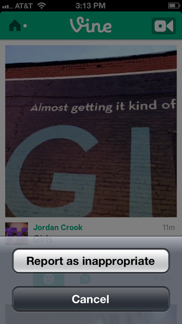 All is not lost, however. Vine users can flag inappropriate video using the mobile app and, if flagged enough times, the system adds an interstitial roadblock that warns you of inappropriate content. Twitter has similar blocks in place for NSFW content and even accounts, but these features aren’t yet available on Vine.