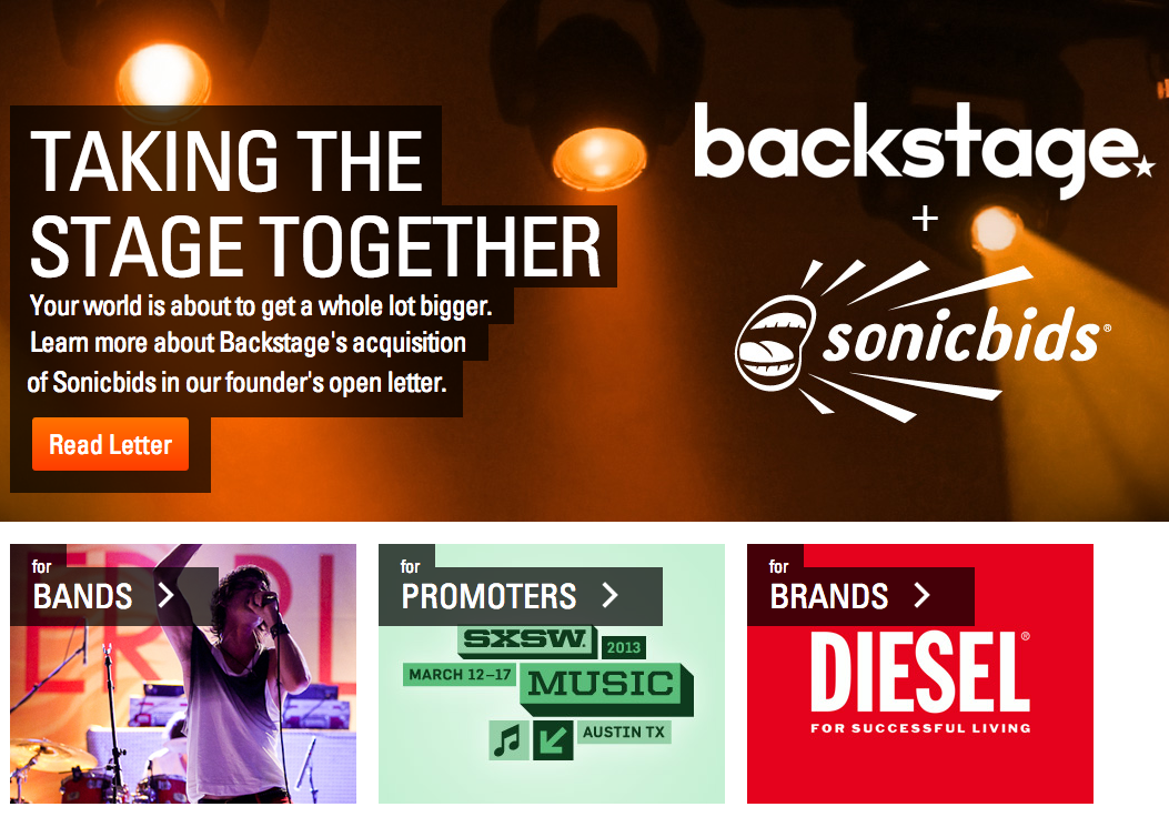 Given their shared mission, acquiring Sonicbids makes perfect sense. Like Backstage, Sonicbids fancies itself a matchmaker (of the online variety), with a particular focus on connecting bands and promoters. The site essentially makes it easier for bands to connect with gigs and those who control which bands get those gigs, without having to pay millions for those referrals. In turn, promoters can search Sonicbids’ database of thousands of bands and musicians when they’re looking for someone to fill in when and if Ozzie doesn’t show up.