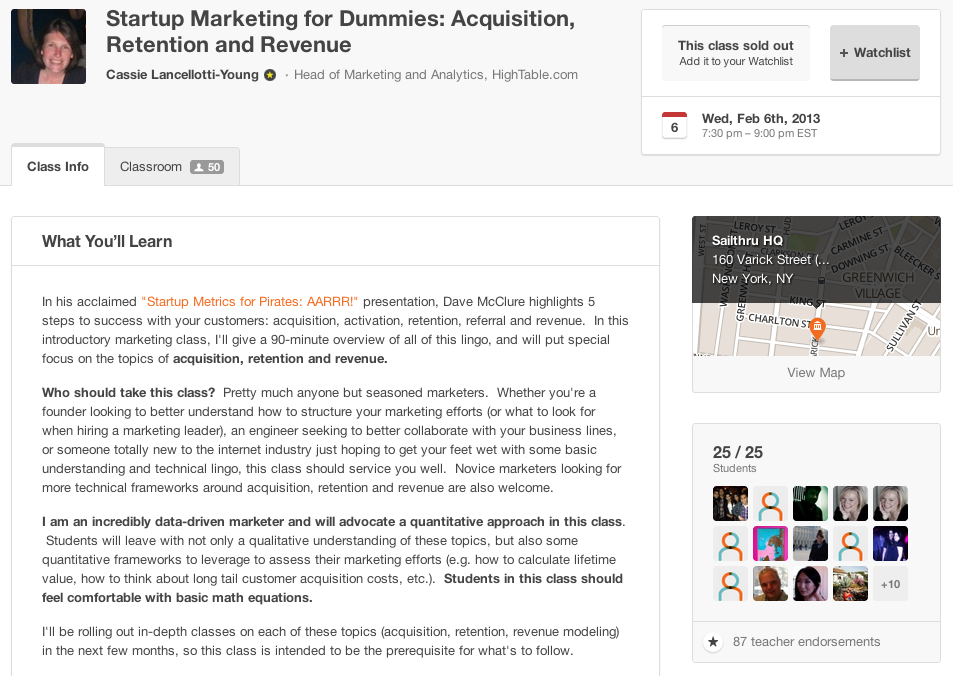 The other nifty part of Skillshare’s experience is that all of its livestreamed material is automatically recorded and accessible to students — forever, the founder says — so that they can learn at their own pace. (Here’s an example of a Meatball Making class. Yes, Meatball Making.)