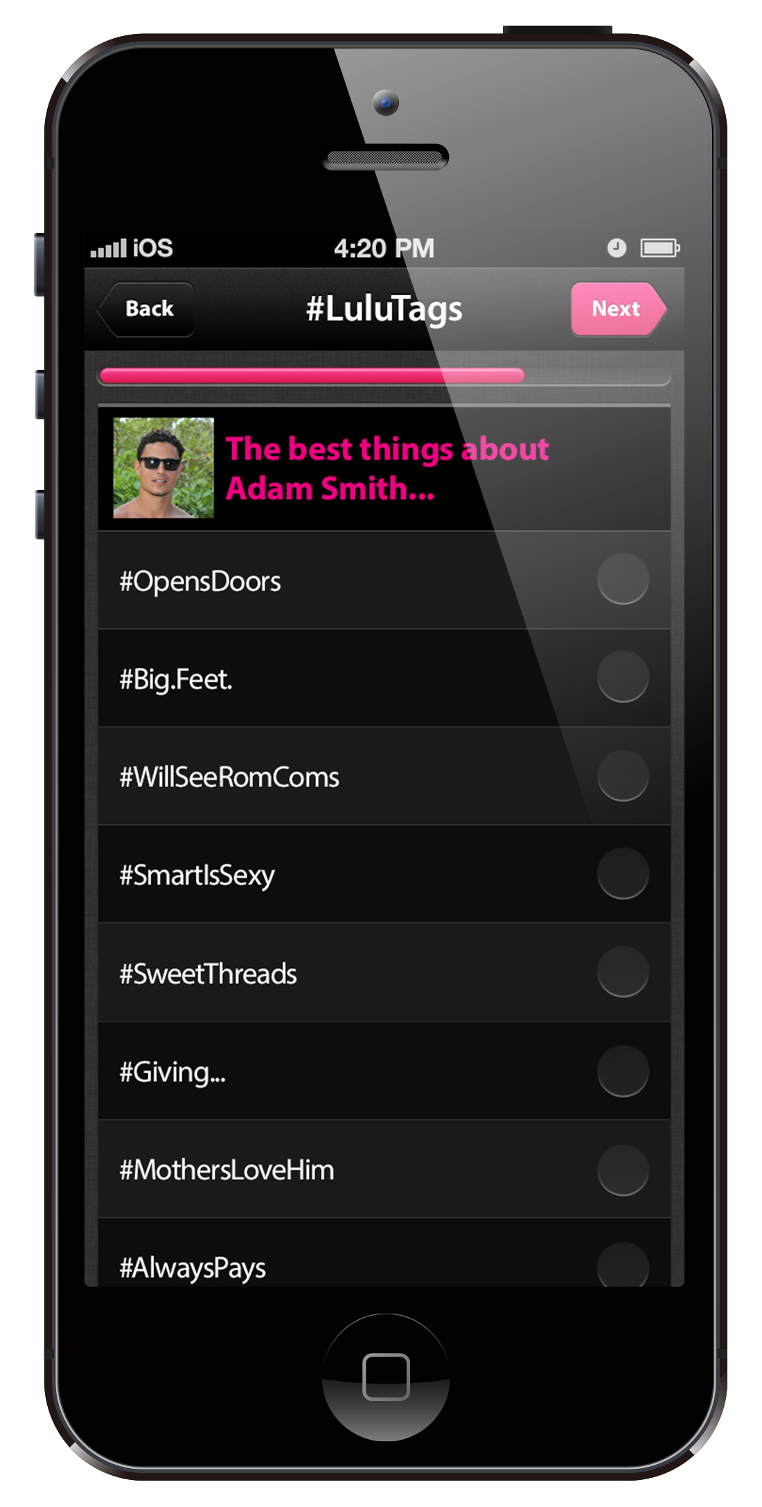 On LuluDude, guys can edit their relationship status, add profile pictures and use hashtags to describe their best (and worst) qualities and their turn-ons (and turn-offs) as well as request reviews from girls. Note that LuluDude is NOT an app for guys to review girls. (Sorry guys).
