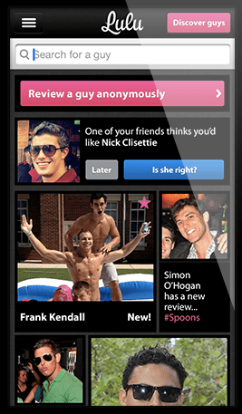 Lulu says an invitation-only launch at Florida State University (FSU) and the University of Florida (UF) in January of its iOS/Adroid app had had over 60,000 downloads in a month, with 140,000 reviews of guys generated. The app is now publicly available here (iOS) and here (Android) in US-only app stores. Aimed at 18-25, Lulu says the typical (female) user comes to the app 5-6 times per day for an average visit of 8 minutes.