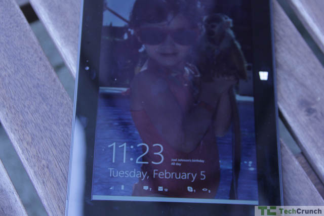 In terms of media features, much of that has been addressed in reviews of the RT and Windows 8. I was pleased to note that the screen resolution was excellent – 1920×1080 is nothing to sneeze at – and Microsoft’s “ClearType” display is very nearly on par with Retina screens, at least at first blush. There are definite pixels visible on this screen but on the whole the display is bright, eminently readable, and offers excellent contrast. Reading on this screen, for example, is a pleasure and casual games like Angry Birds work just as they would on a similarly outfitted tablet.