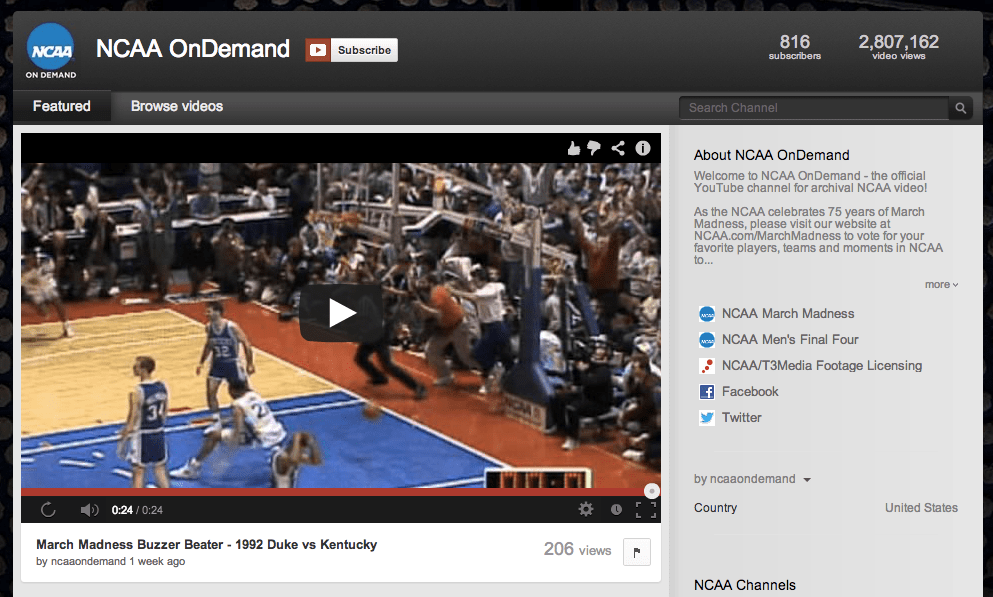 A few years ago, the organization rolled out its NCAA Vault from years and years of March Madness. Now it’s putting some of that footage to use, with the launch of a new YouTube channel, called NCAA OnDemand, which will be home to hundreds of the best clips from years of the tournament.