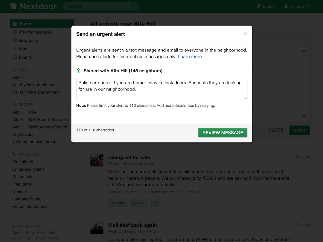 Nextdoor 2.0 also has a stronger focus on the site’s crime and safety monitoring functions, with a new dedicated section for such posts. Tolia says that today, crime- and safety-related posts account for 20 percent of all Nextdoor’s messages, making the site a modern-day version of the classic neighborhood watch. The company has started to partner up with local police and fire departments who can use special Nextdoor accounts to issue dispatches and special “urgent alerts” to residents in Nextdoor 2.0, and it plans to step up those types of initiatives in the months ahead.