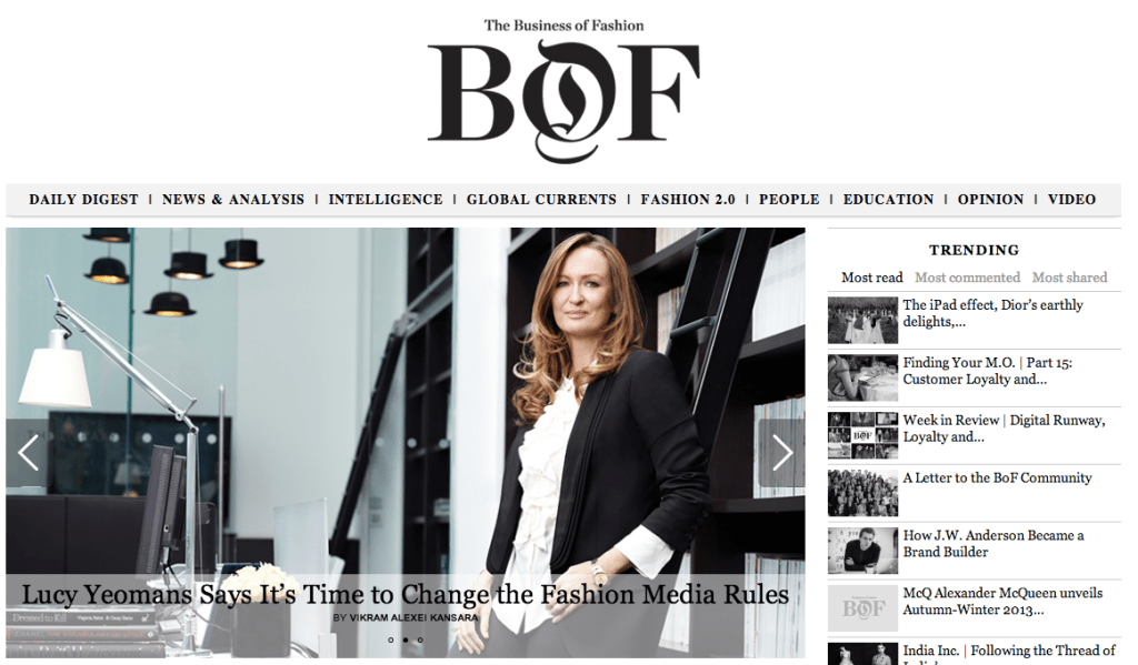 Of course, there are a number of other fashion blogs out there, both strong offerings from small, lone-gun outfits; and those from major fashion powerhouses like Vogue. BoF has had a number of people approach it for acquisition, Amed admits, but it has so far chosen to keep itself independent.