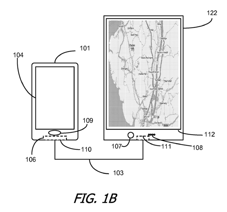 The patent describes a method for two-way communication between a handset and an accessory, which is capable of transmitting location data from one to the other. In its most basic iteration, it beams GPS info from an iPhone, for example, to a larger display, which can output the map visuals based on data received. That could allow your iPhone to wirelessly (or via wired connection, as both methods are described) relay navigation info to an in-car entertainment system, for example.