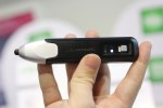 The vWand is a chubby little thing, but it’s not overly heavy thanks to its lightweight, plasticky (but comfortable) body. A pair of LEDs ride high on the vWand’s shaft to let the user know when it’s on and ready to scan, and a more-than-adequate chunky capacitive nib (not entirely unlike the end of Wacom’s Bamboo Stylus) allowed me to doodle to my heart’s content in Paper for a few moments. The real magic happens on the other end though — tapping the vWand’s butt to a set of preset NFC tags at the vWand booth prompted the connected Android tablet to fire up the messaging app, bring up the dialer, or load particular web pages.