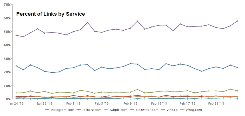 - Twitter’s built-in tools for photo and video sharing are dominating the competition. Vine.co and pic.twitter.com are the most popular tools in their respective categories by a wide margin.